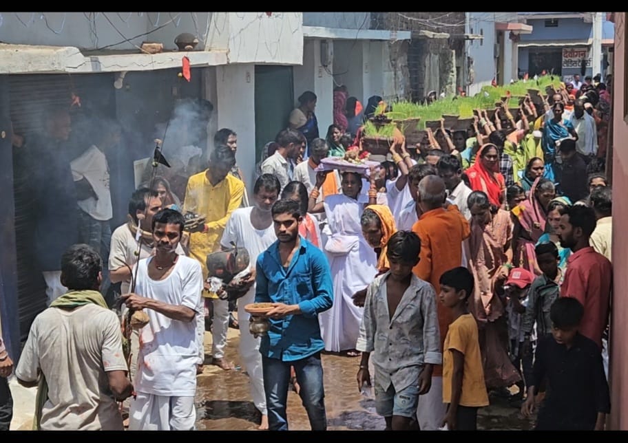 तिल्दा नेवरा में चैत्र नवरात्र के आखिरी दिन आज गांव-गांव में प्रज्वलित घरों व शीतला मंदिरों में विराजित फुलवारी का विर्सजन किया गया। सेवा जसगीत की धुन पर नाचते-गाते मांदर की थाप पर झूमते भक्तों ने श्रद्घा के साथ जोत जवारा का विसर्जन किया।नौ दिनों तक मां देवी की उपासना के बाद आज जोत जवारा विसर्जन की शोभायात्रा शहर सहित गांव-गांव में  धूमधाम से निकाली गई। गांव के शीतला मंदिर एवं कई भक्तों के द्वारा अपने घरों पर जोत प्रज्वलित किए गए थे। जिसे जस गीत सेवा के माध्यम से स्थानीय तालाबों पर विसर्जन किया गया।