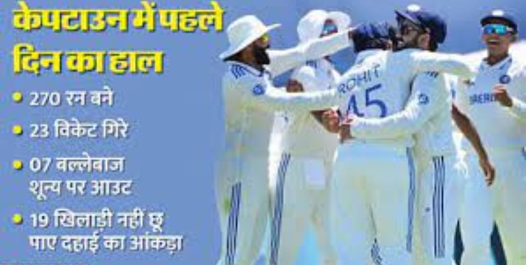 मोहम्मद सिराज की घातक गेंदबाजी की बदौलत दक्षिण अफ्रीका को 55 रन पर ढेर करने के बाद भारतीय टीम बड़ी बढ़त हासिल करती दिख रही थी। उसने 153 रन बना लिए थे और छह विकेट हाथ में थे। विराट कोहली और केएल राहुल जैसे दिग्गज विकेट पर थे, लेकिन यहां लुंगी नगीदी और कैगिसो रबादा ने 11 गेंद के अंदर बिना कोई रन दिए छह विकेट निकाल दिए। भारतीय 153 रन पर सिमट गई और पहली पारी में 98 रन की बढ़त हासिल कर सकी। टेस्ट क्रिकेट के इतिहास में यह पहली बार है जब किसी टीम के छह विकेट बिना कोई रन बनाए ही गिर गए। न्यूलैंड्स का विकेट बल्लेबाजों के लिए मुसीबत बन गया। पहले ही दिन 23 विकेट गिर गए। द. अफ्रीका ने दूसरी पारी में तीन विकेट पर 62 रन बना लिए हैं।