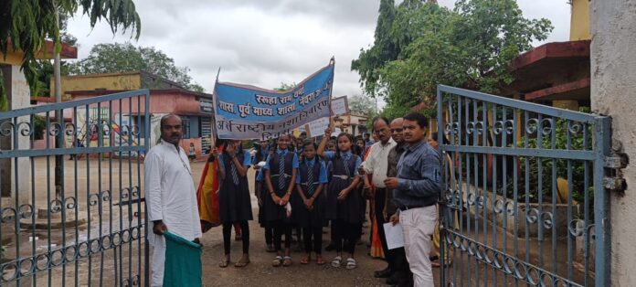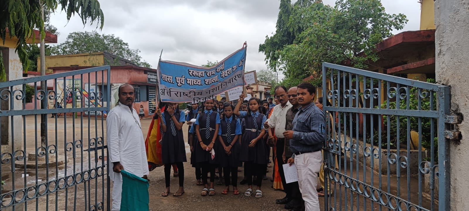 तिल्दा-नेवरा -अंतरराष्ट्रीय नशा निरोधक दिवस के मौके पर ररूहा राम वर्मा शासकीय पूर्व माध्यमिक शाला नेवरा क्रमांक 01 से नशा मुक्ति के लिए प्राचार्य राजेश चंदानी प्रधान पाठक विनोद वर्मा के मार्गदर्शन में जागरूकता रैली निकाली गयी।रैली में समाज सेवक प्रकाश मेंघानी, स्वास्थ्य विभाग के डॉ प्रवीण शर्मा, बांस टाल स्कूल के हेड मास्टर भागीरथी पान्से के साथ स्कुल स्टाफ शामिल हुआ| रैली को हरी झंडी दिखाकर रवाना किया गया..